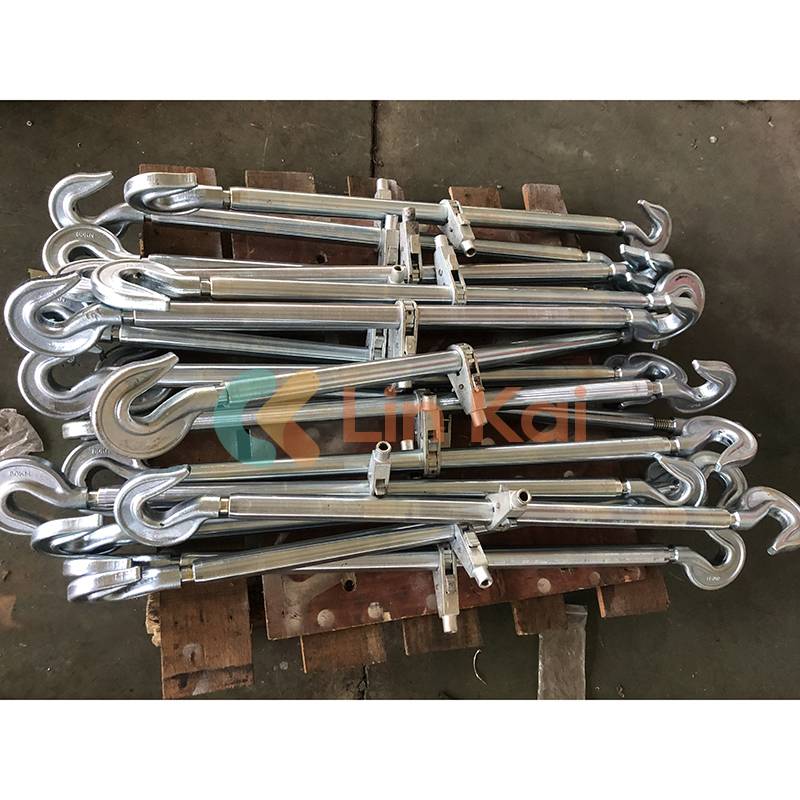 Ningbo Lingkaik fabrikatutako altzairuzko kako bikoitza transmisio-linearen osagarria da. Potentzia transmisioaren eraikuntzan eta telekomunikazio ingeniaritzan erabiltzen da. Gure altzairuzko kako bikoitza eroalea, altzairuzko alanbre soka edo altzairuzko kablea estutzeko aplikatzen da egonaldi alanbrea instalatzean eta isolatzaile katea ordezkatzen denean. Ningbo Lingkai-ren ontziratu gabeko altzairuzko Hook Double Turnbuckle-k estutze-eremua handia, praktikoa eta sendoa du. segurua eta fidagarria da.